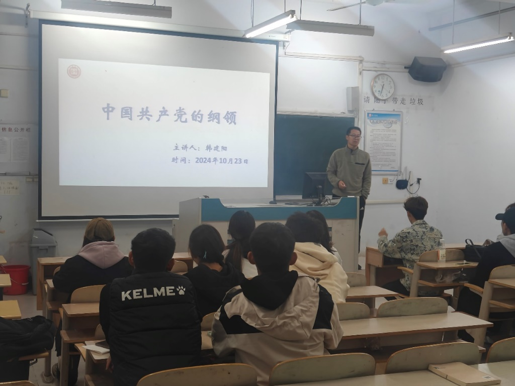 韩建阳以《中国共产党的纲领》为题进行授课。他从中国共产党的纲领内容和要求出发,强调一心一意跟党走,帮助员工明白中国共产党的纲领的重要性。党的纲领规定着党的奋斗目标,指明党的前进方向,是员工学习的重要部分。然后,他结合员工实际情况,帮助青年员工了解自己的人生目标和发展方向,正确认识当代青年人的使命和担当。最后,他对青年员工提出,要铭记党的初心和使命,要严格遵守党的纲领,为了自己的人生目标努力奋斗,听党话,跟党走,做好自己的每一件事。