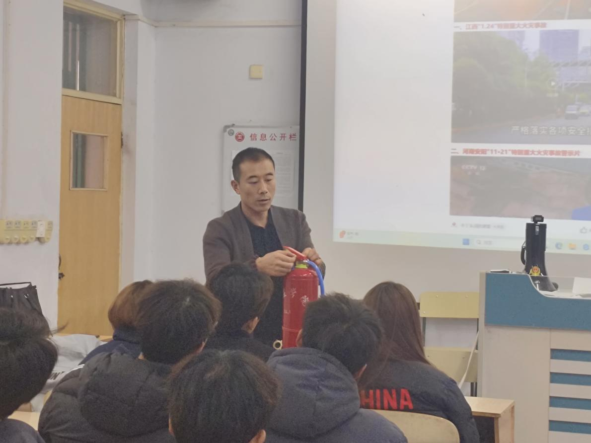 刘老师结合消防安全制度以及各类火灾案例,对树立公共消防意识,预防和避免可能引起消防事故的内外因患,以及个人面对突发火灾事故应如何进行救灾和逃生进行了全面讲解,并向同学们展示灭火器等消防工具的使用方法。