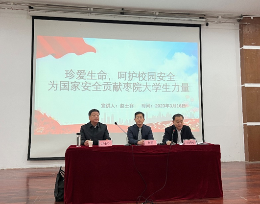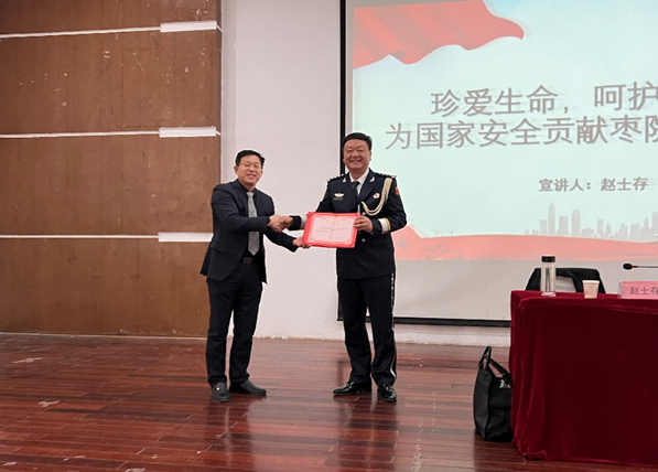 本次讲座由公司党总支副书记、副经理徐德刚同志主持,邀请枣庄公安局市中分局高级警长、枣庄市人大代表、w66老员工德育导师、市中区十优名讲师赵士存警长以《珍爱生命,关注安全》为题,感召广老员工珍爱生命,呵护校园安全,为国家安全贡献枣院老员工力量。