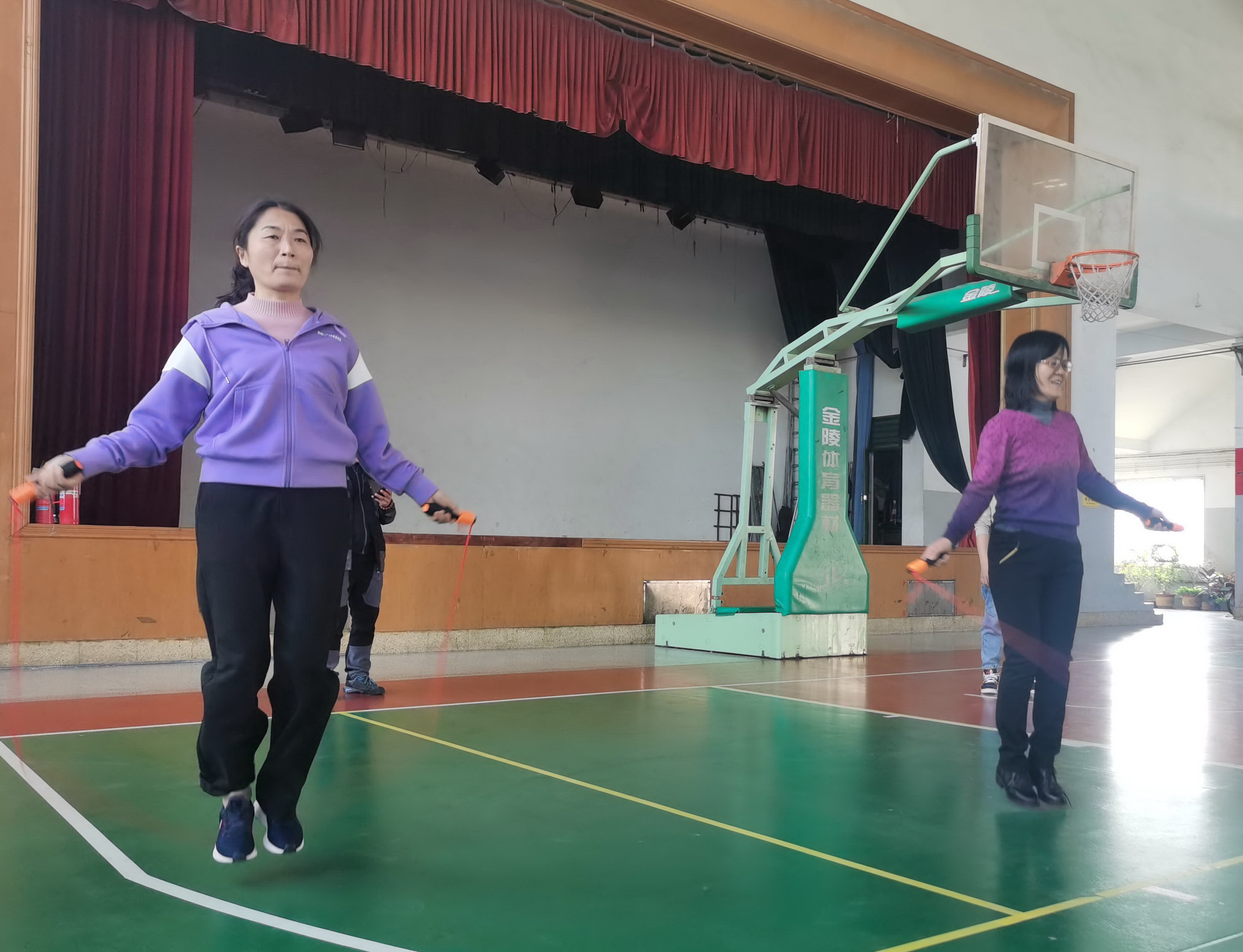 女教职工们纷纷响应,积极参加活动。活动分为教学八段锦、分组投篮、踢毽子、跳绳等比赛项目。活动现场热闹非凡,在锻炼身体的同时也享受了趣味活动带来的乐趣。各位女教职工对活动展现出的热情,彰显了她们健康向上、充满活力的精神面貌,活动现场一片欢声笑语,为“三八节”增添了节日的气氛。
