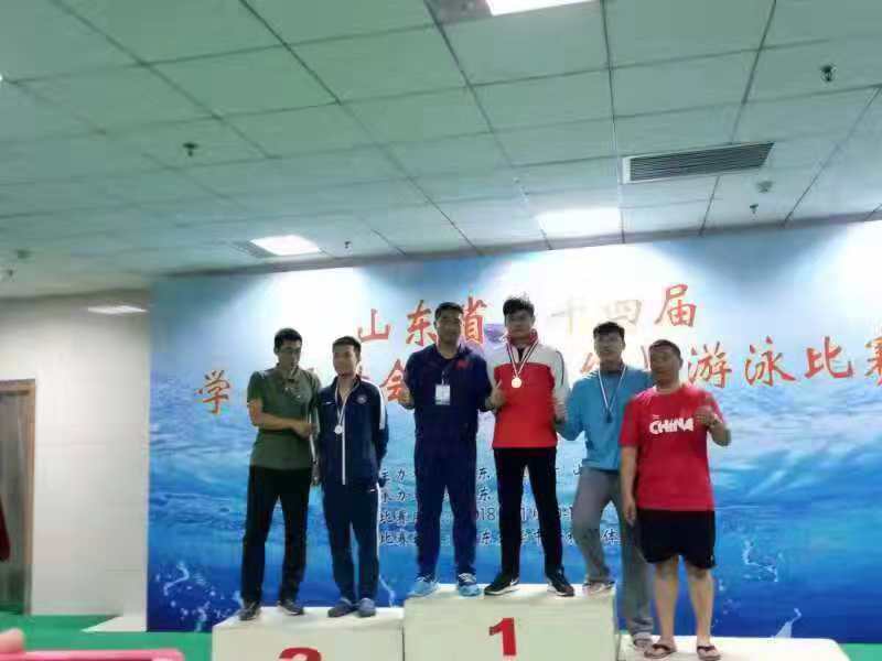 在山东省第十四届员工运动会(老员工组)游泳项目首场比赛中,公司运动员王楷文劈波斩浪、奋力拼搏获得男子甲组100米仰泳金牌,同时在上午的比赛中公司运动员陈奕霏获女子甲组100米仰泳铜牌。