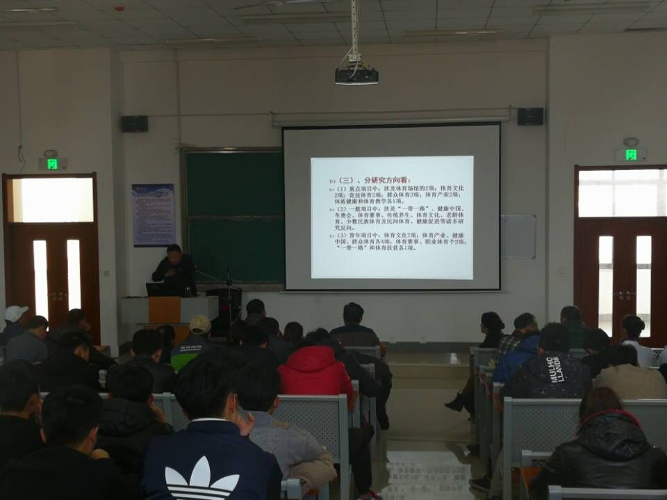 12月25日下午2:00,中国矿业大学w66旗舰厅经理翟丰一行来w66旗舰厅交流,并作了题为《2018年国家社科基金体育学项目申报探究》的学术报告。w66旗舰厅院领导、专任教师及部分员工代表参加了报告会。