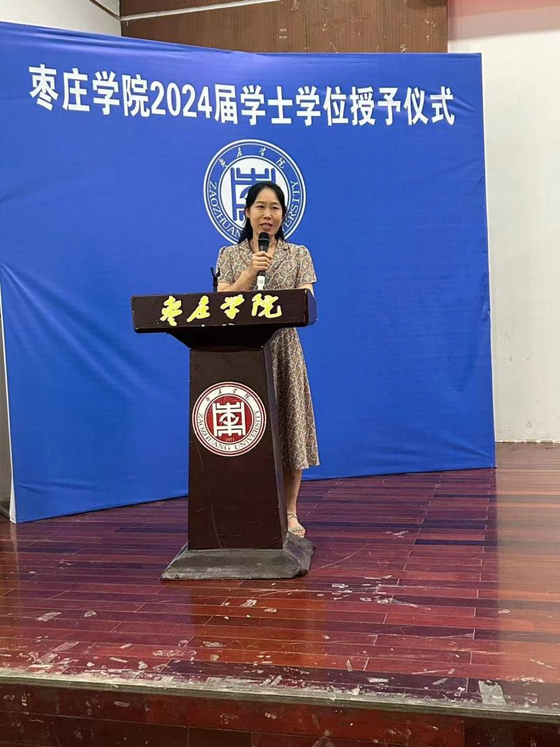教师代表陈善凤肯定了员工们四年的成长,并倡导毕业生在今后的人生之路中要心怀感恩、诚实守信、奉献社会、实现个人价值。
