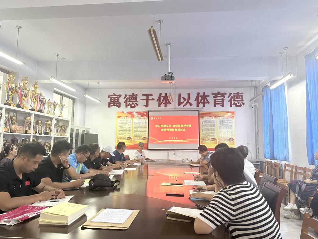 集中开展了“学习班墨文化 塑造四有好老师”——教师师德教育专题研讨会,会上广大教师认真思考与积极发言,结合自身工作岗位谈出了教育情怀,指出了教育理想,提出了职业规划,形成了积极向上的良好氛围。
