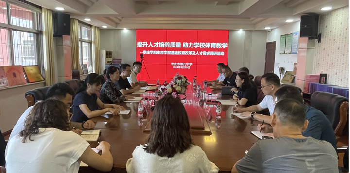 为推动高校体育人才培养和中学体育改革,进一步了解基础教育改革和体育人才需求状况,促使协同育人互融共进,9月20日,w66旗舰厅学科教研基地在枣庄九中、实验中学龙子心校区进行调研并分别举行体育学科教研基地揭牌仪式,w66旗舰厅副经理李丽、韩建阳、市中区教体局教研中心副主任朱亚东、体卫艺股田思响、枣庄九中董事长李婷、实验中学党总支副书记、龙子心校区董事长王鹏及各校其他相关领导、体育骨干教师参加了本次活动。