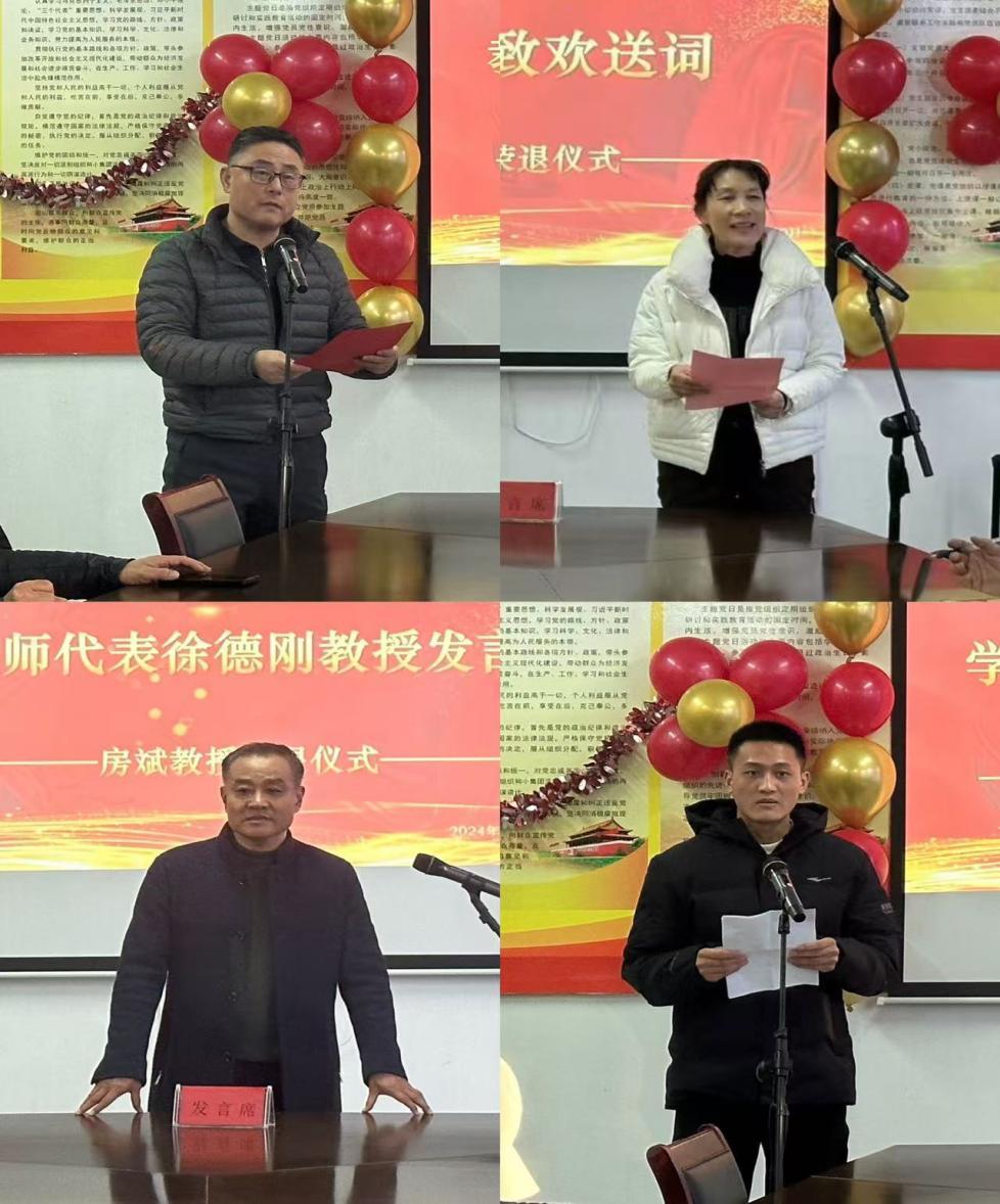 教师代表徐德刚教授回顾了房斌教授以教育事业为重,倾全部心血教书育人,爱岗敬业,默默耕耘,无私奉献,表达了对房教授的不舍、祝福与感恩之情。员工代表李想、陈亦菲庄重而又满怀不舍地表达了对房教授感恩和留恋之情。