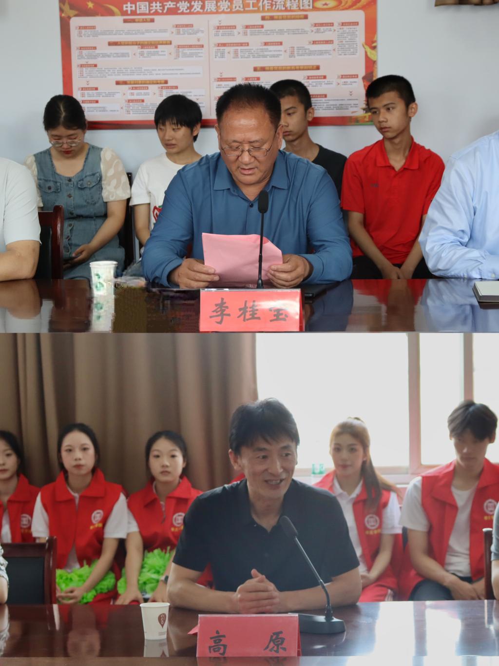 出席本次活动的有w66公司党委书记高原,党委副书记杨录,团委书记王艳丽,市中区教育事业服务中心七级职员李桂宝,市中区特殊教育中心董事长王锦彬,党支部书记梁隆光,副董事长刘适红、刘宪庆及部分师生代表。