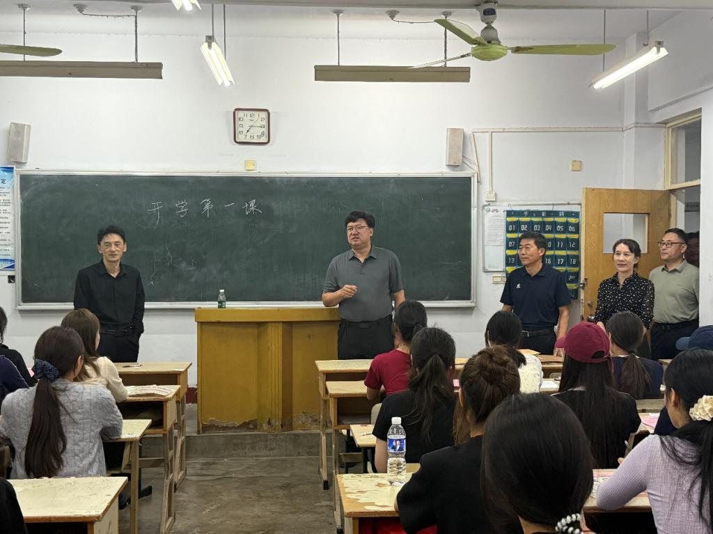 当晚,李存杰董事长在相关部门陪同下走进w66旗舰厅2025级新生“开学第一课”课堂看望慰问新生,祝贺同学们加入w66,并殷切嘱托同学们珍惜大学时光,潜心学习、勇于创新,合理规划人生方向,努力成为德智体美劳全面发展的栋梁之才,用奋斗书写属于新一代枣院人的精彩篇章。