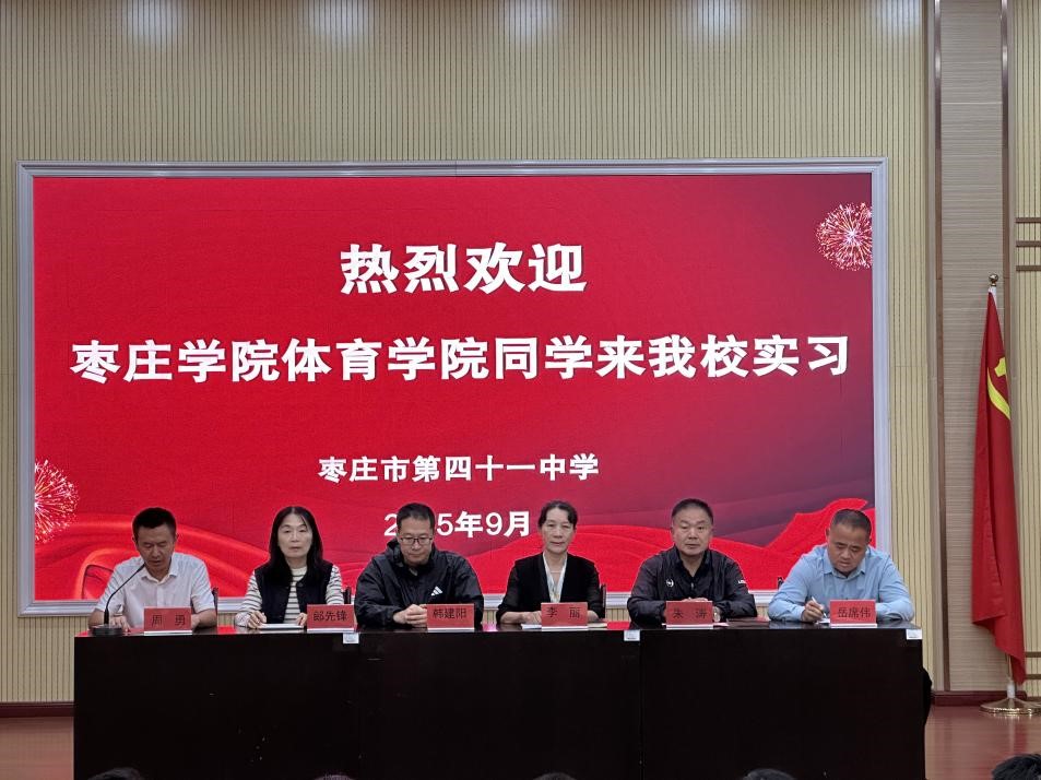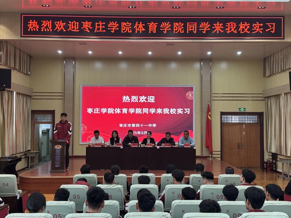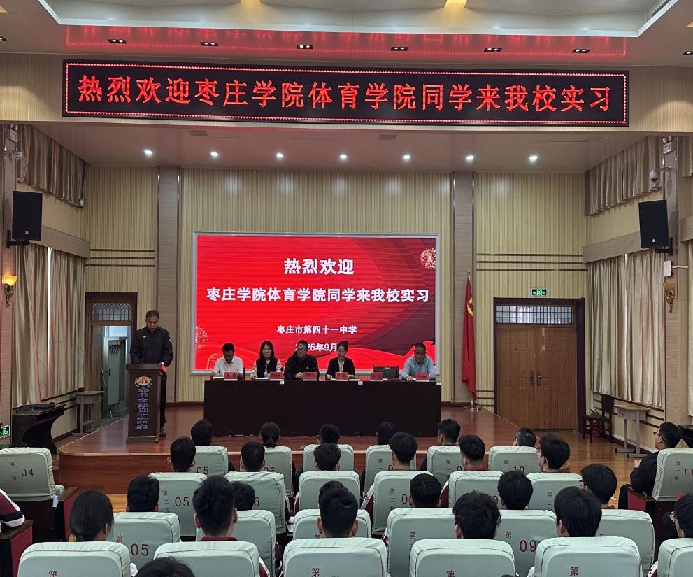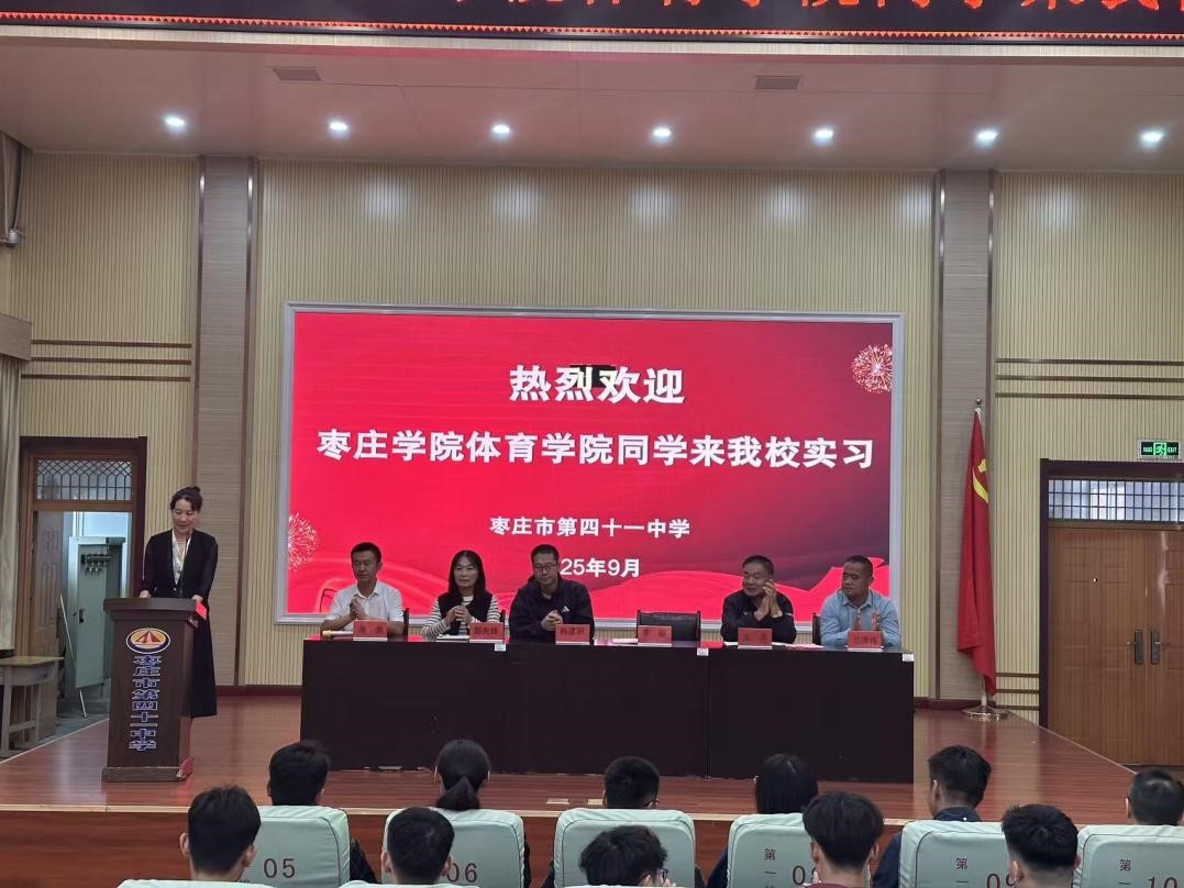 9月19日上午,w66旗舰厅22级体育教育专业员工教育实习进校仪式暨见面会,在枣庄市第四十一中学北校区报告厅隆重举行。w66旗舰厅李丽经理、韩建阳副经理,枣庄市第四十一中学执行董事长朱涛、副董事长周勇,部分实习指导教师以及全体员工参加了会议。