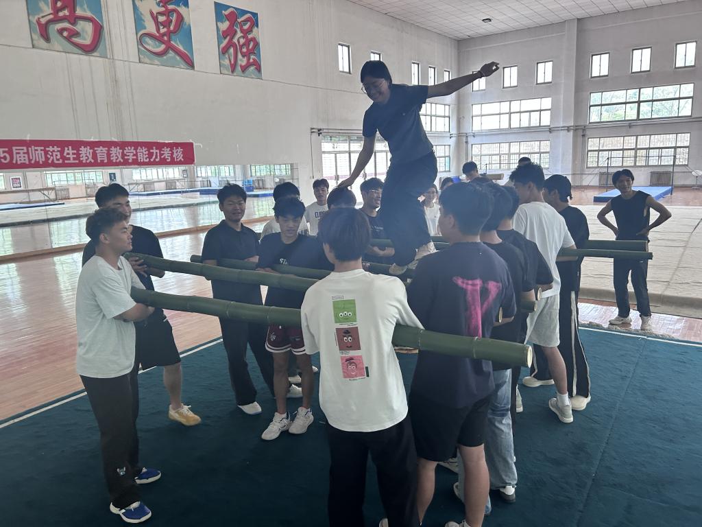活动后的分享会上,1班刘浩深有感触:“未来带员工,也要让他们懂得‘不是一个人在战斗’。”摇晃竹梯上的每一步勇气刻痕,每一次支撑传递的信任温度,都让这群未来体育教师领悟到:体育教育不仅是技能的传授,更是协作精神与坚韧品格的熔炉。这架云梯,实为一次生动的育人预演,他们将以体育传递力量,让协作温暖更多年轻心灵。