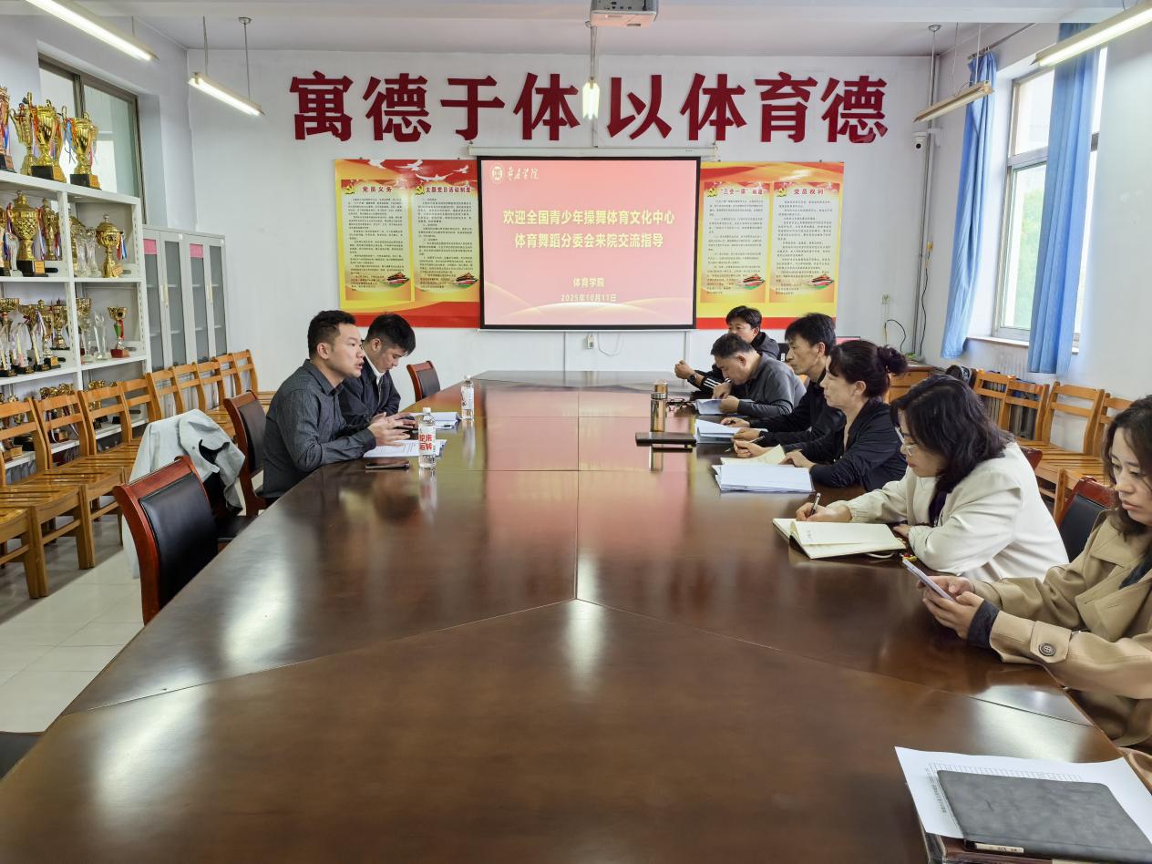 10月11日下午,全国青少年操舞体育文化中心体育舞蹈分委会、山东省演出行业协会国标舞委员会秘书长邢政、副主任欧懿来w66旗舰厅座谈交流。公司党政领导及体育艺术教研室相关教师参加了座谈。