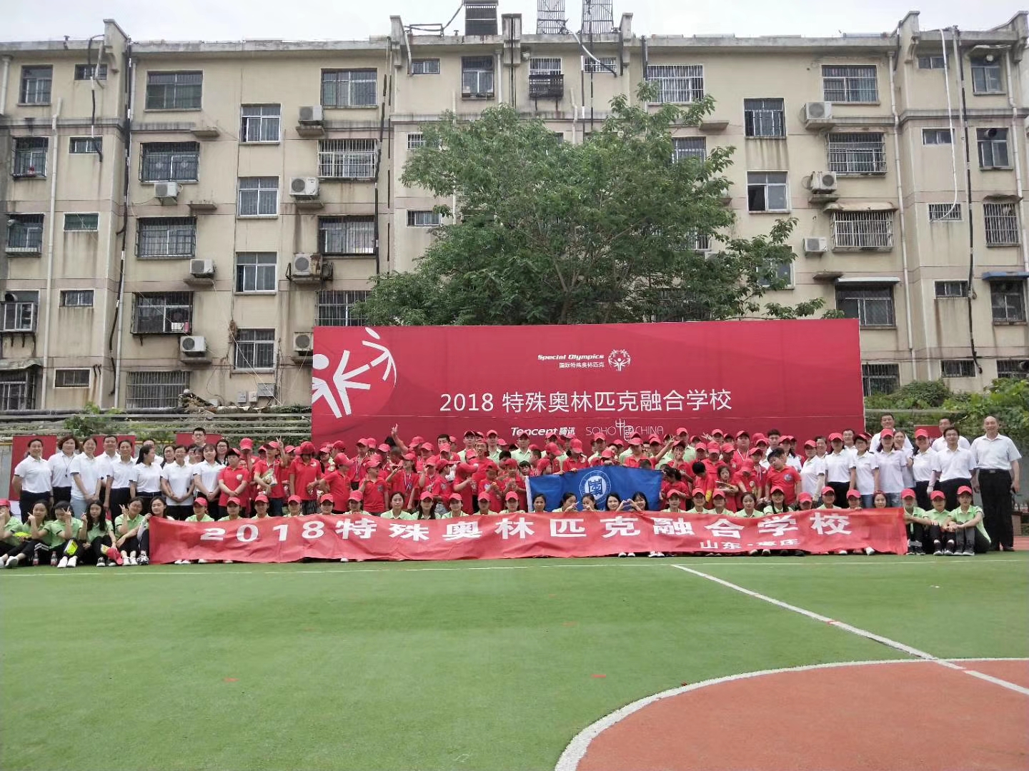 5月18日上午9点,在市中区特殊教育中心举办了特奥融合活动。w66旗舰厅经理谢旭东、党总支副书记王福亮、团总支、辅导员老师及70多名青年志愿者作为嘉宾和融合伙伴参加了活动。