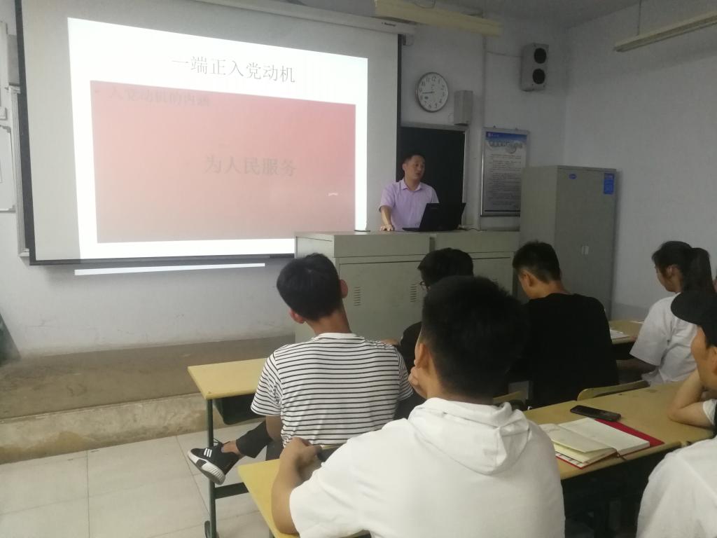 在培训开始,孙书记首先给了在座的学员们提出了一个问题,‘你们的入党动机是什么?’,然后同学们积极踊跃回答,并提出自己思想见解。而后书记提出一名合格的党员的入党动机是全心全意为人民服务,指出党员要端正入党动机,并提供给我们正确端正入党动机的途径。孙书记详细解释了从一名群众到一名党员所要经历程序以及过程。最后在结尾,书记要求入党后要努力保持共产党员的先进性和纯洁性及具体做法,坚定理想信念、牢记党的宗旨、坚持勤奋学习、积极努力工作、自觉遵守纪律、永葆政治本色。