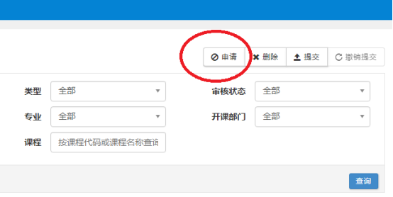 2.在成绩修改(员工院系申请)界面中单击申请按钮,进入申请界面。