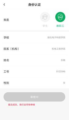 2)、认证不通过(我的界面会显示“审核未通过”,修改信息后重新提交)