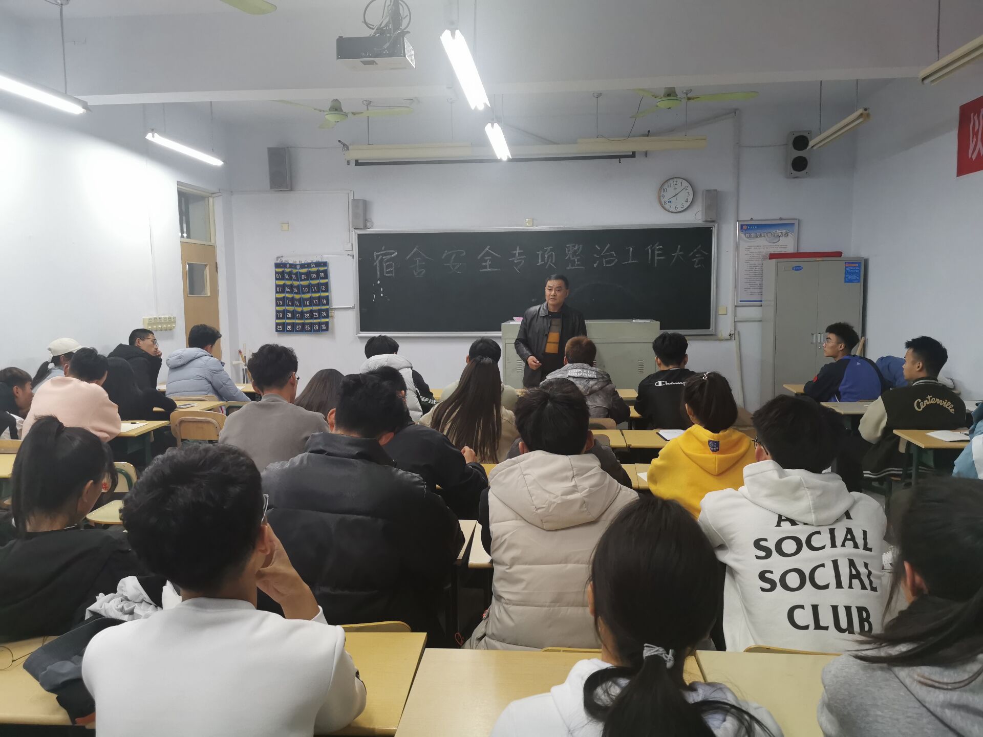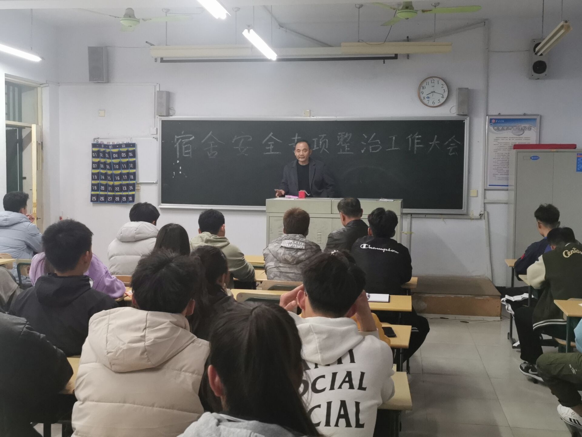 徐德刚宣读了体育公司2020年秋冬季宿舍安全专项整治工作实施方案》,传达了员工处相关工作精神。此次秋冬季宿舍安全专项整治,主要是整治员工晚归、夜不归宿、酗酒、宿舍内吸烟、违规校外住宿、违规使用电器、打架等不良行为等。要求全体员工干部加大宿舍检查力度,将定期检查和不定期抽查结合起来。在此期间,各班级结合实际情况分别召开主题班会,向同学讲明宿舍安全专项整治期间的具体要求,在同学们中间广泛宣传宿舍安全。