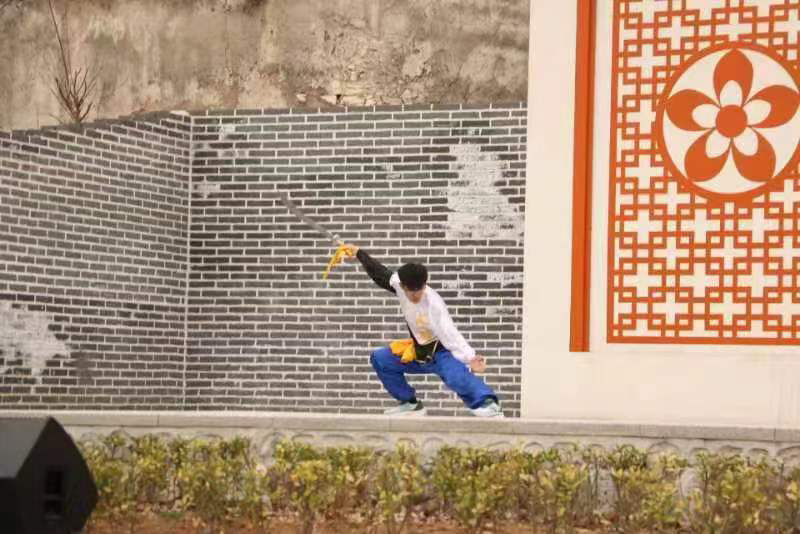 整场演出在广场舞《天南地北唱中华》的激情表演中拉开帷幕。志愿者于丰源、刘孟全表演了《男儿当自强》武术节目。武术动作如行云流水,一气呵成,身体姿势优美,犹如柳絮随风轻舞,浑然天成的优雅与力量并存。他们的精湛技艺和出色表现,将中国武术气势磅礴的武风演绎得淋漓尽致。