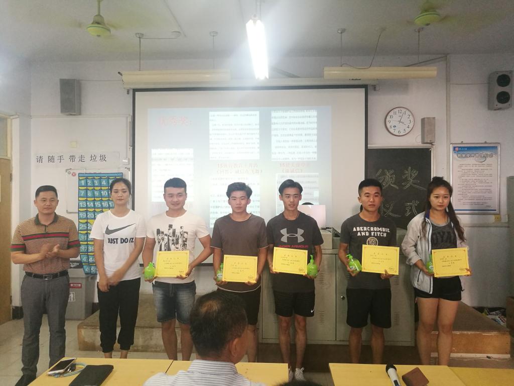 首先,公司领导老师为获奖同学颁奖。获奖员工代表李昊翰、刘际康、鲍光旭、苗家港等发表了获奖感言,他们分别谈了自己的获奖体会和今后的学习、工作打算。颁奖后,16级健美操专业闫敏作了诚信应考的发言。最后,徐德刚副经理进行了总结。他从宿舍评比活动说起,分享了良好习惯的养成对老员工活的意义。随后,对上学期考试出现的违纪情况进行了通报。他将期末考试给大家做了分解,从考试安排到考务会、监考、阅卷要求,展示了公司为营造良好的考试氛围做出的努力。