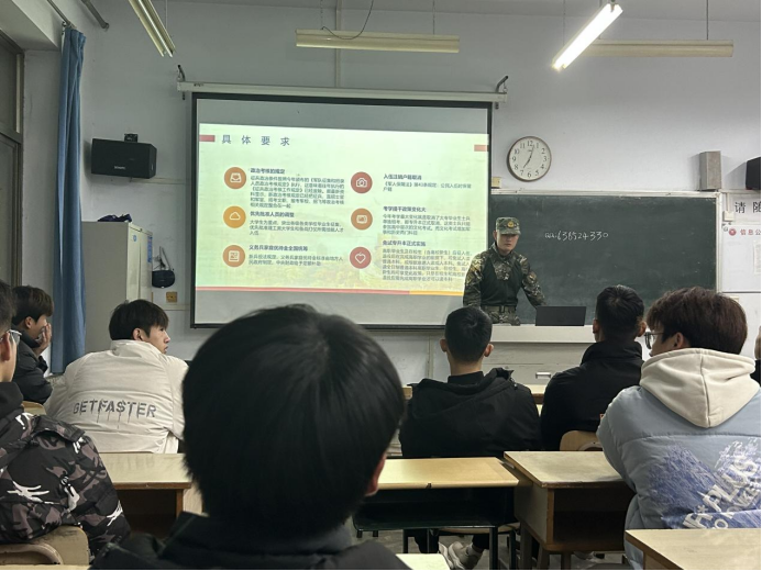 此次宣讲会邀请退伍同学开展宣讲活动,重温入伍动机、讲述部队故事、分享退伍生活,在全体员工范围内,大力倡导应征入伍,结合应征入伍进行宣讲。对于同学们提出的问题,也做出详细具体的回答,如征兵入伍条件要求、基本流程等。