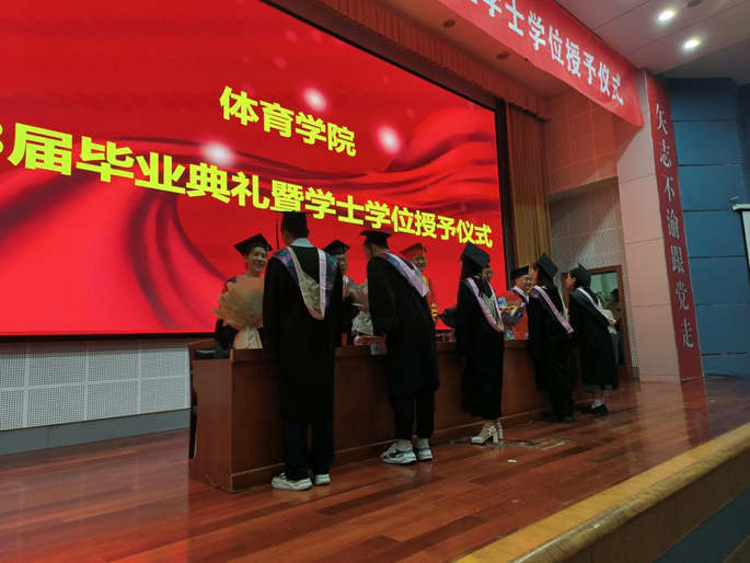 最后,党总支书记郭勇向2023届毕业生送去毕业祝福并提出三点希望,一是希望毕业生能够继续奋斗,勇担时代使命,做一个有责任、对国家人民有益的体育人;二是希望毕业生能够正确面对未来的困难,做一个自强自信的体育人;三是希望毕业生牢记团结友爱,脚踏实地、相互帮助,捷报频传,做一个幸福的体育人。