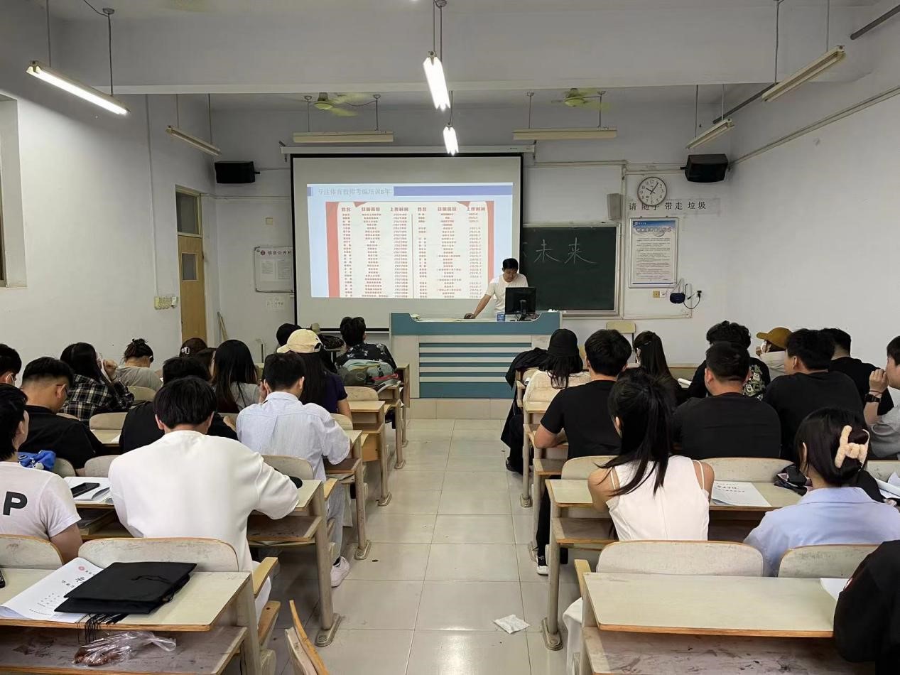 讲座就近年来体育教师编考试招录情况、考试流程及注意事项进行讲解;就员工最关心的考试信息进行分享,为员工针对性制定考编学习计划;并与三个班级的员工进行了良好的问答互动,针对员工的疑虑和困惑提出合理宝贵的建议。
